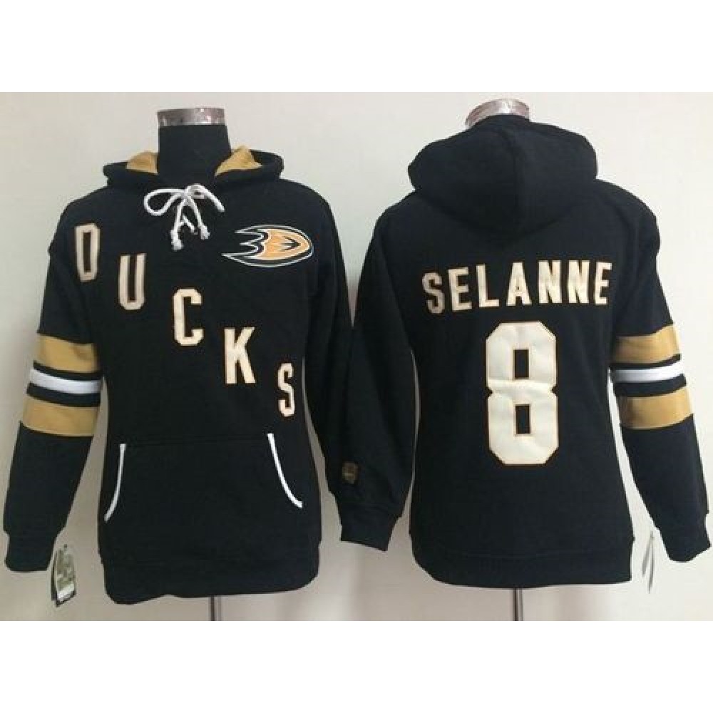 Anaheim Ducks #8 Teemu Selanne Black Women's Old Time Heidi NHL Hoodie