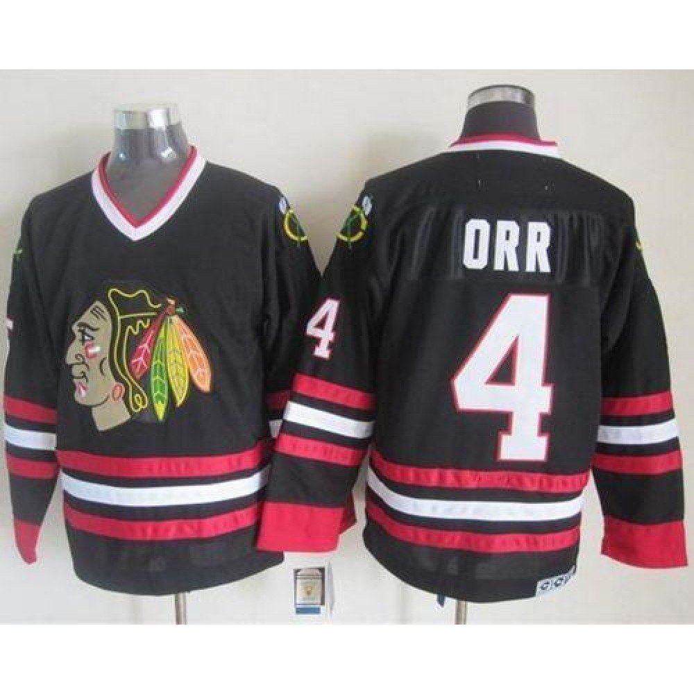 Blackhawks #4 Bobby Orr Black CCM Throwback Stitched NHL Jersey