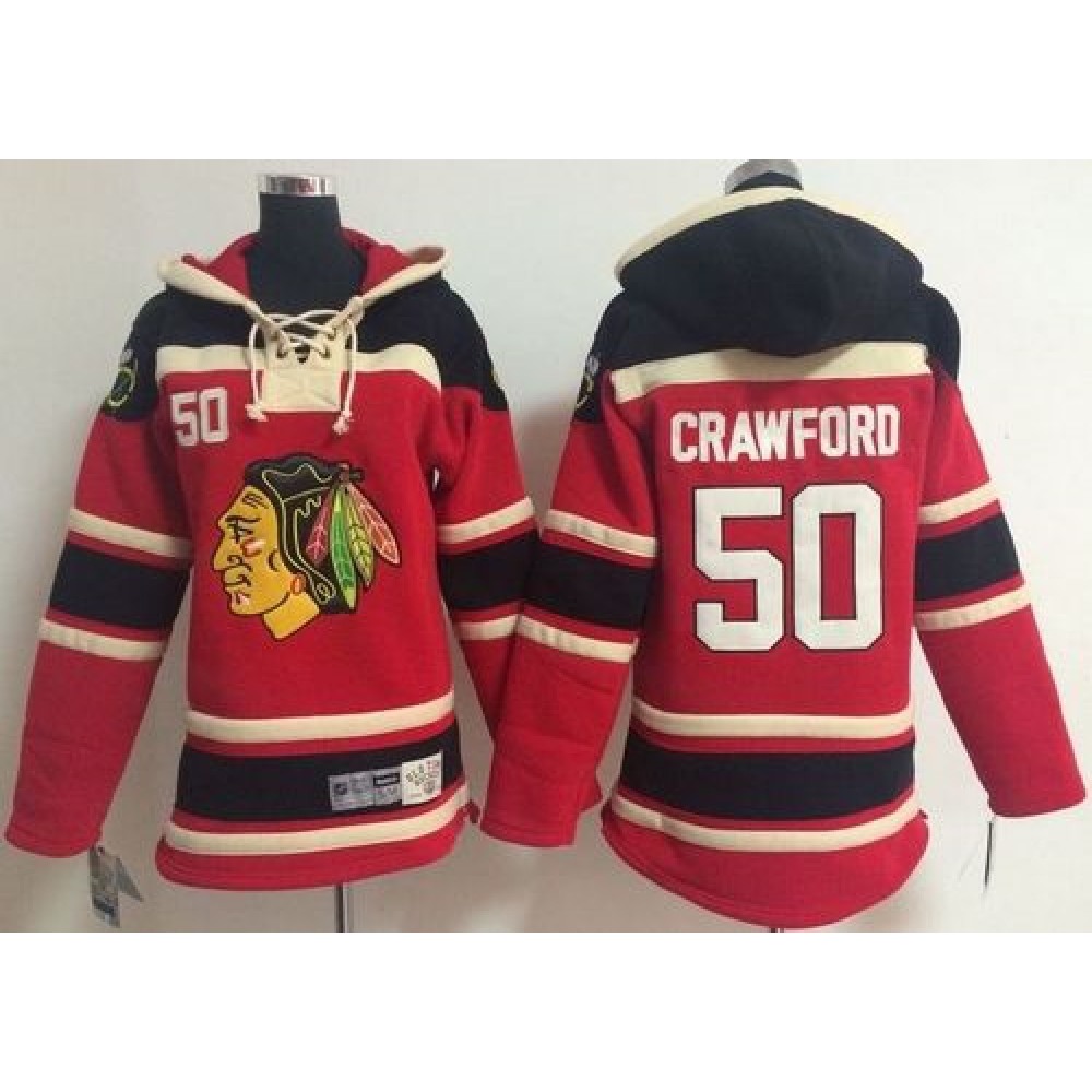 Blackhawks #50 Corey Crawford Red Sawyer Hooded Sweatshirt Stitched Youth NHL Jersey