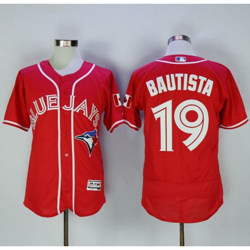Blue Jays #19 Jose Bautista Red Flexbase Authentic Collection Canada Day Stitched MLB Jersey