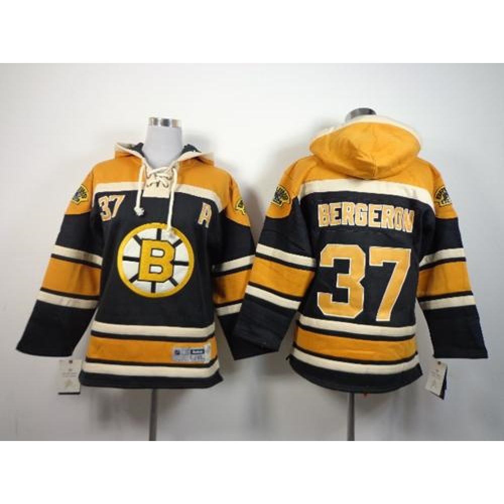 Bruins #37 Patrice Bergeron Black Sawyer Hooded Sweatshirt Stitched Youth NHL Jersey