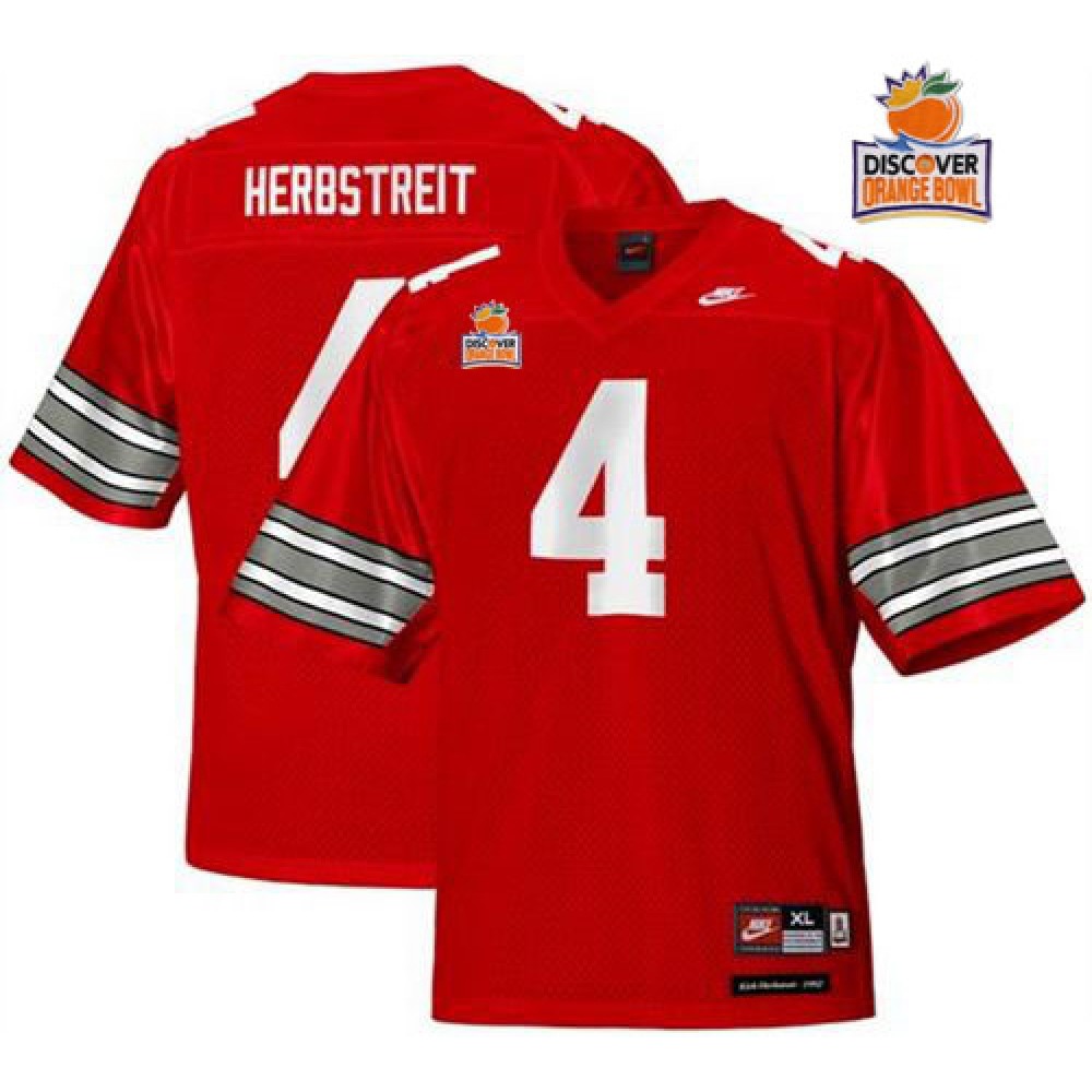 Buckeyes #4 Kirk Herbstreit Red Legends of the Scarlet & Gray Throwback 2014 Discover Orange Bowl Patch Stitched NCAA Jersey