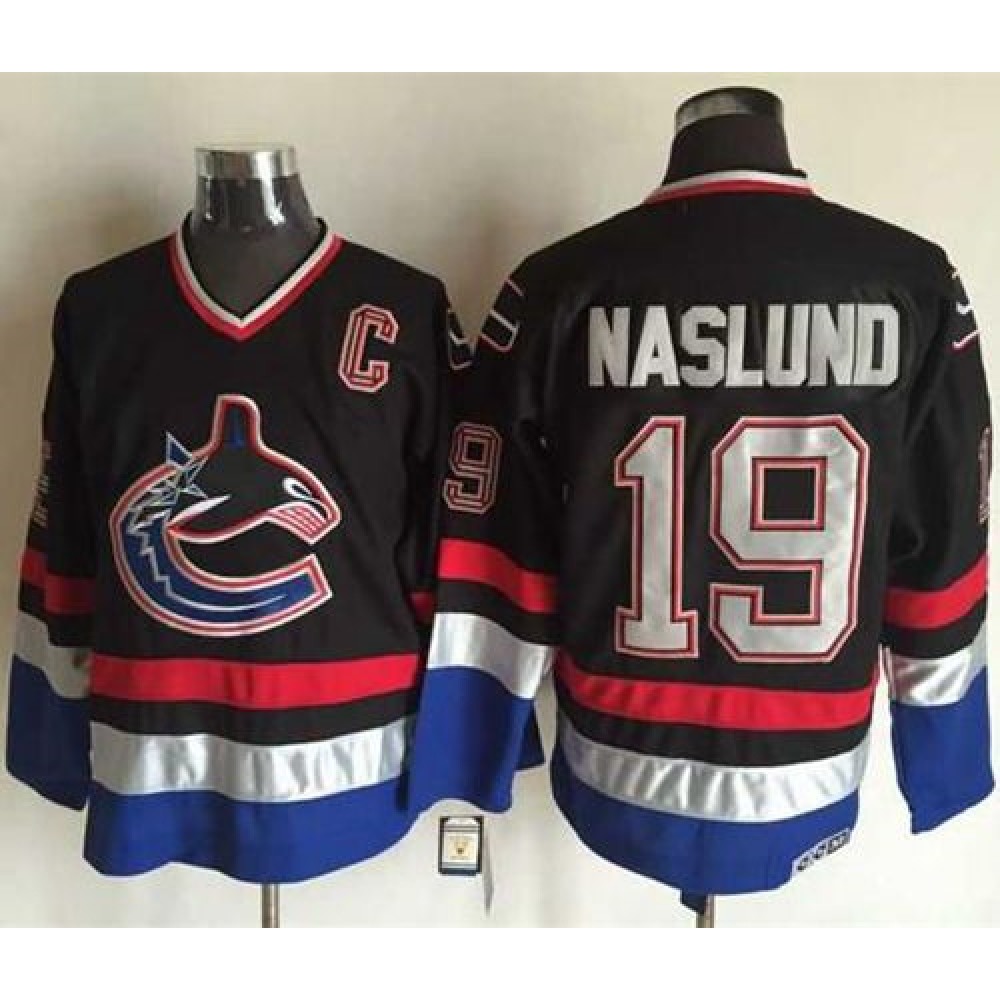 Canucks #19 Markus Naslund Black/Blue CCM Throwback Stitched NHL Jersey