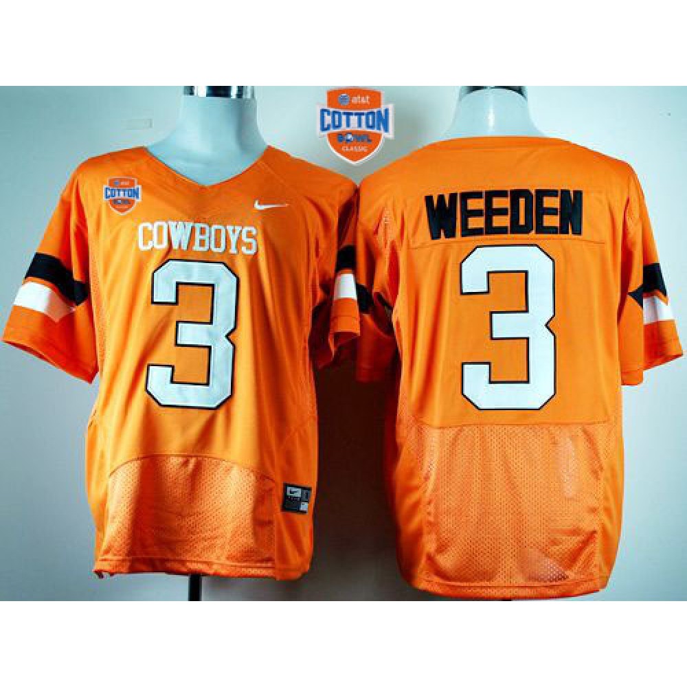 Cowboys #3 Brandon Weeden Orange Pro Combat 2014 Cotton Bowl Patch Stitched NCAA Jersey