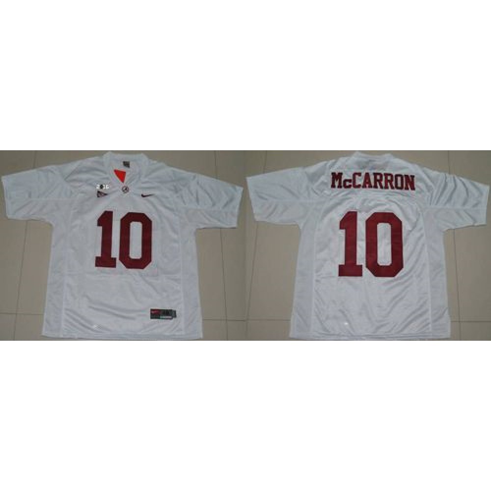 Crimson Tide #10 AJ McCarron White 2016 College Football Playoff National Championship Patch Stitched NCAA Jersey