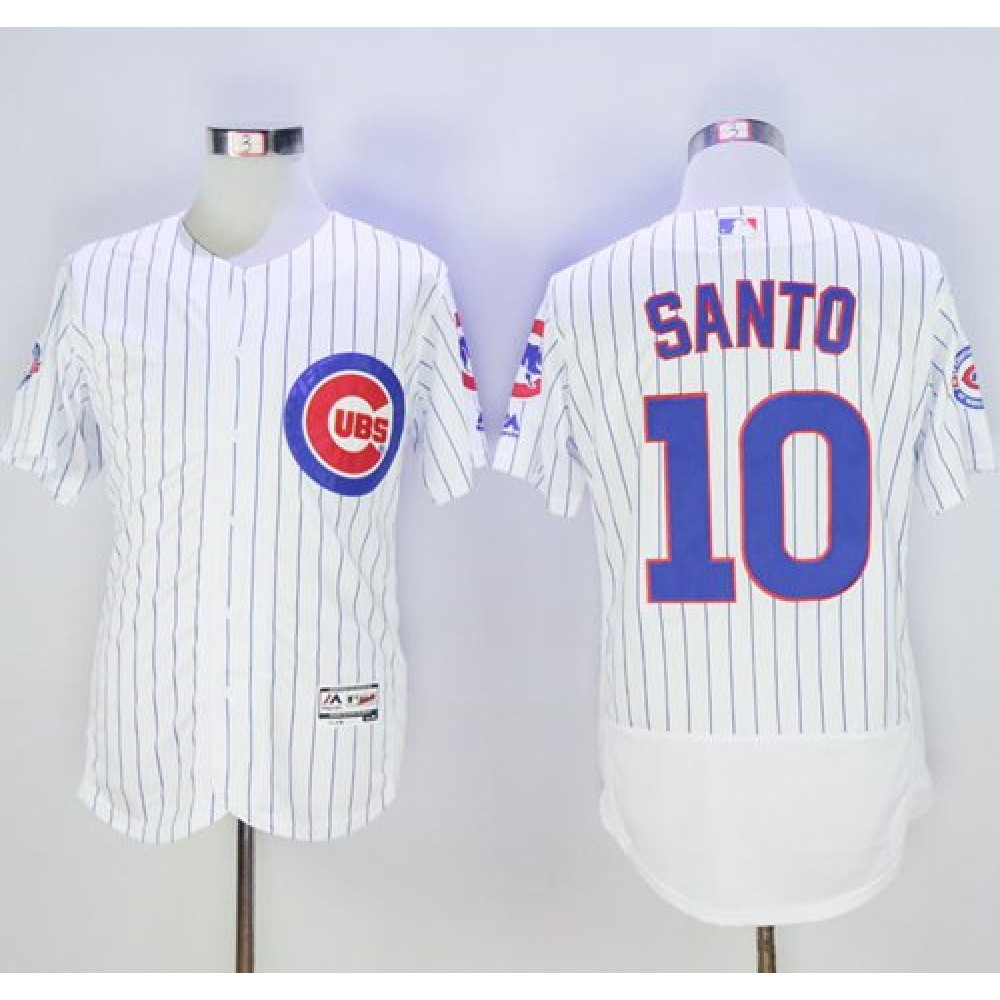 Cubs #10 Ron Santo White Flexbase Authentic Collection with 100 Years at Wrigley Field Commemorative Patch Stitched MLB Jersey