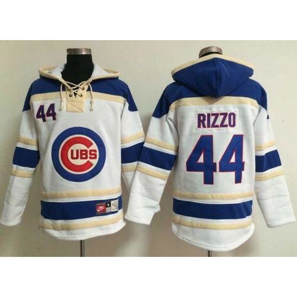 Cubs #44 Anthony Rizzo White Sawyer Hooded Sweatshirt MLB Hoodie