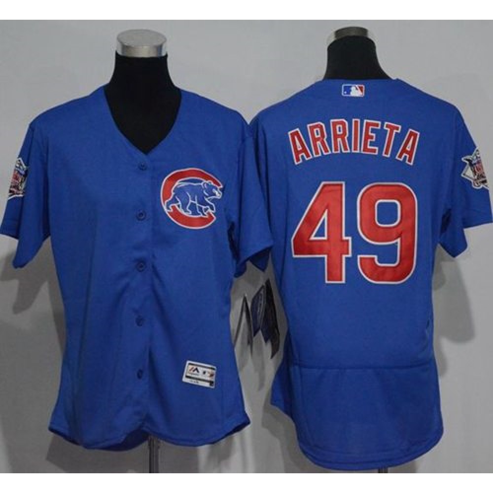 Cubs #49 Jake Arrieta Blue Flexbase Authentic Women's Stitched MLB Jersey