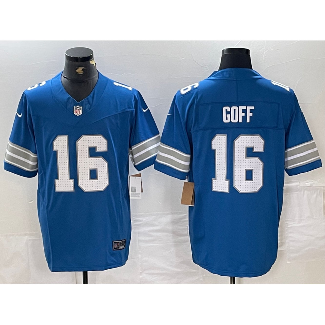 Detroit Lions Home Game Jersey Blue #16 Jared Goff Mens