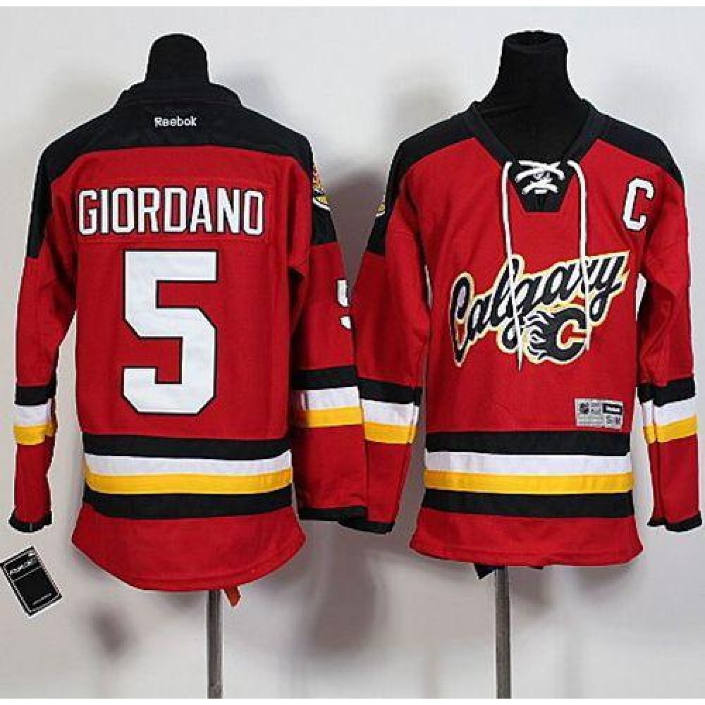 Flames #5 Mark Giordano Red Alternate Stitched Youth NHL Jersey