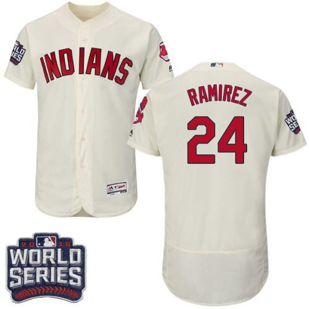 indians #24 Manny Ramirez Cream Flexbase Authentic Collection 2016 World Series Bound Stitched MLB Jersey
