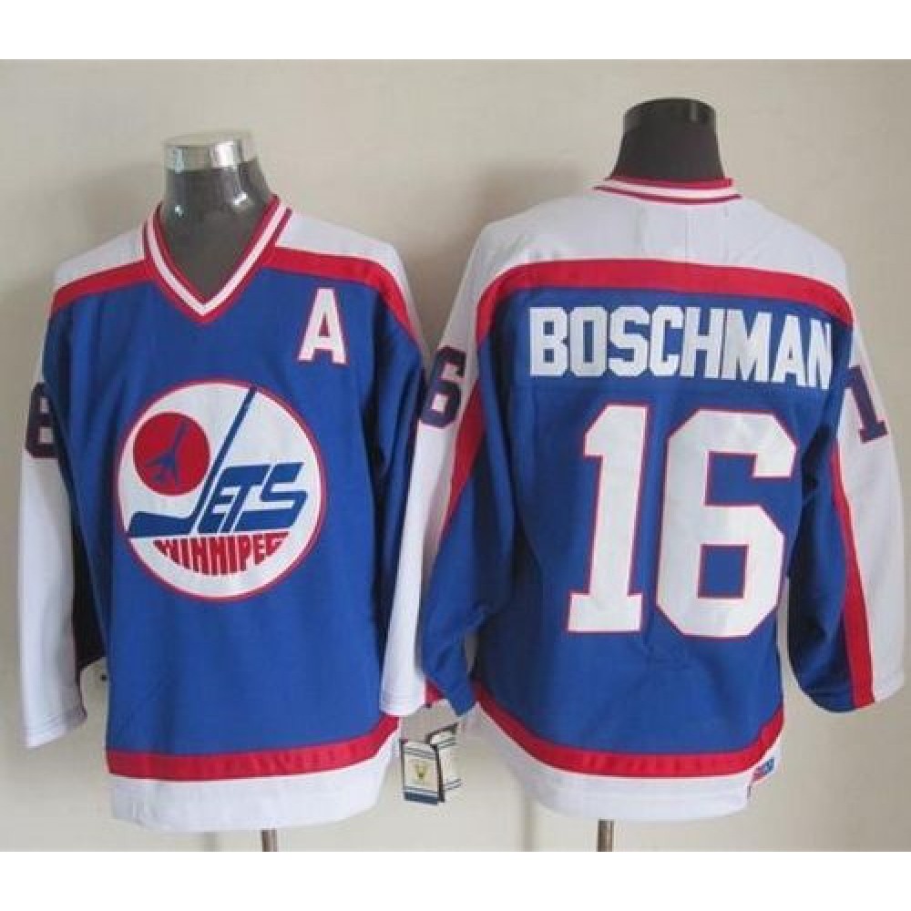 Jets #16 Laurie Boschman Blue/White CCM Throwback Stitched NHL Jersey