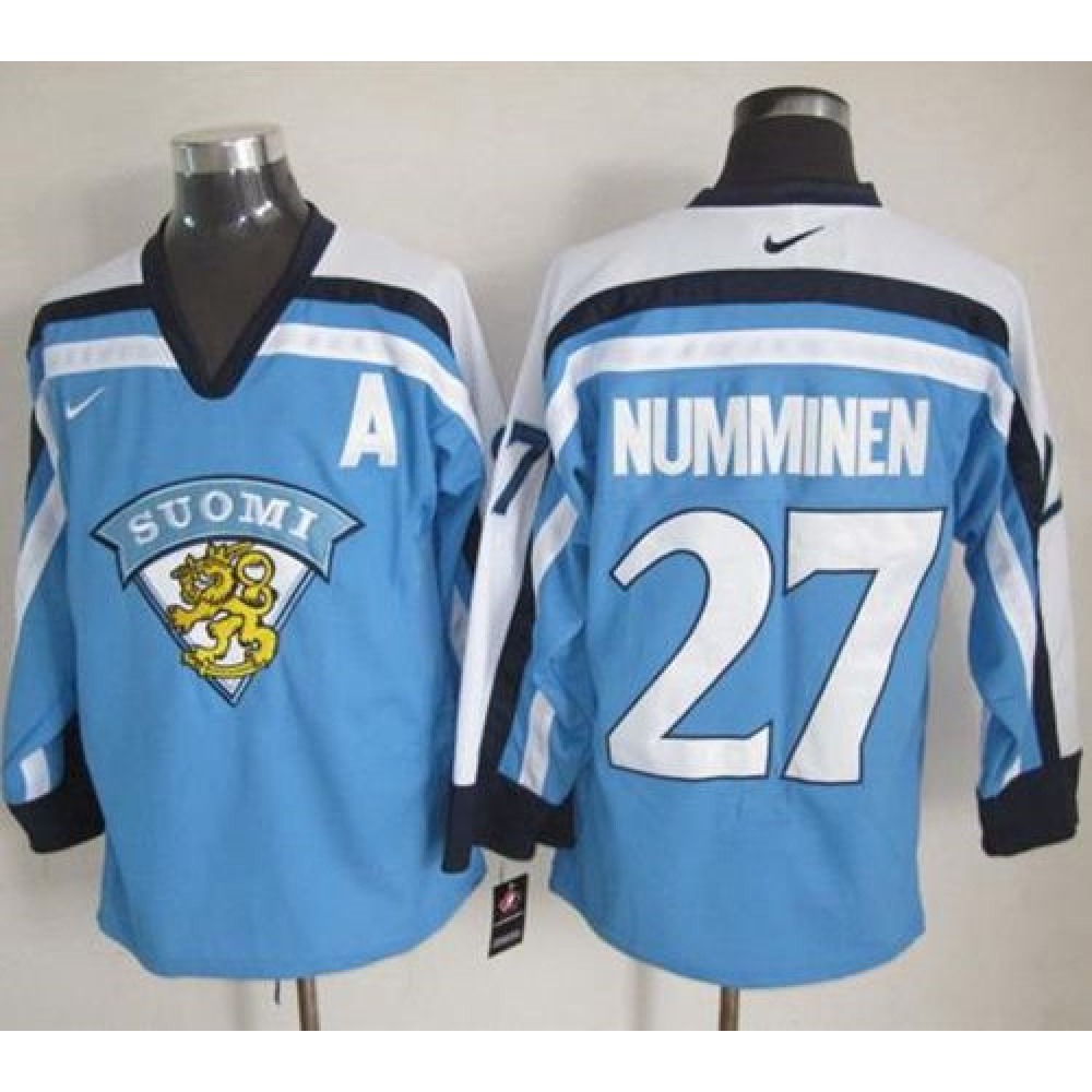 Jets #27 Teppo Numminen Light Blue Throwback Stitched NHL Jersey