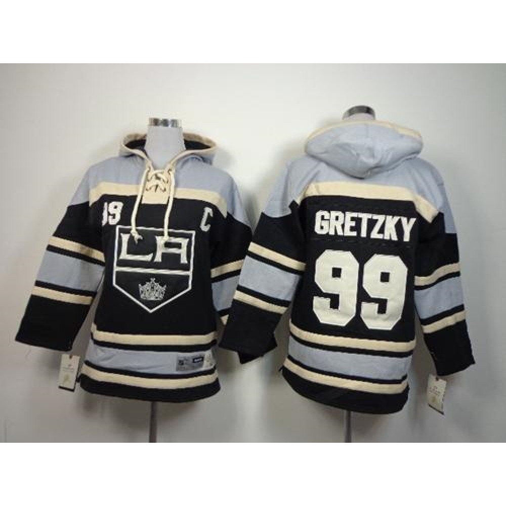 Kings #99 Wayne Gretzky Black Sawyer Hooded Sweatshirt Stitched Youth NHL Jersey