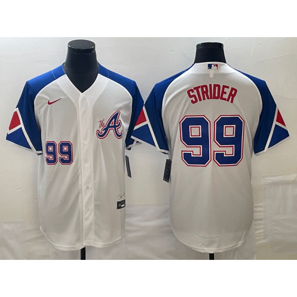 Men's Atlanta Braves #99 Spencer Strider White 2023 City Connect Cool Base With Patch Stitched Baseball Jersey
