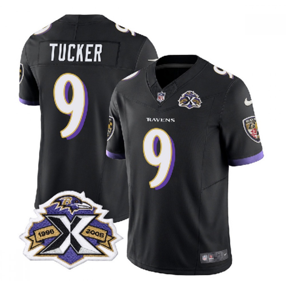 Men's Baltimore Ravens #9 Justin Tucker Black 2023 F.U.S.E With Patch Throwback Vapor Limited Jersey