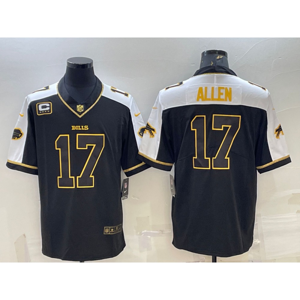 Men's Buffalo Bills #17 Josh Allen Black Gold With C Patch Thanksgiving Vapor Untouchable Limited Stitched Jersey