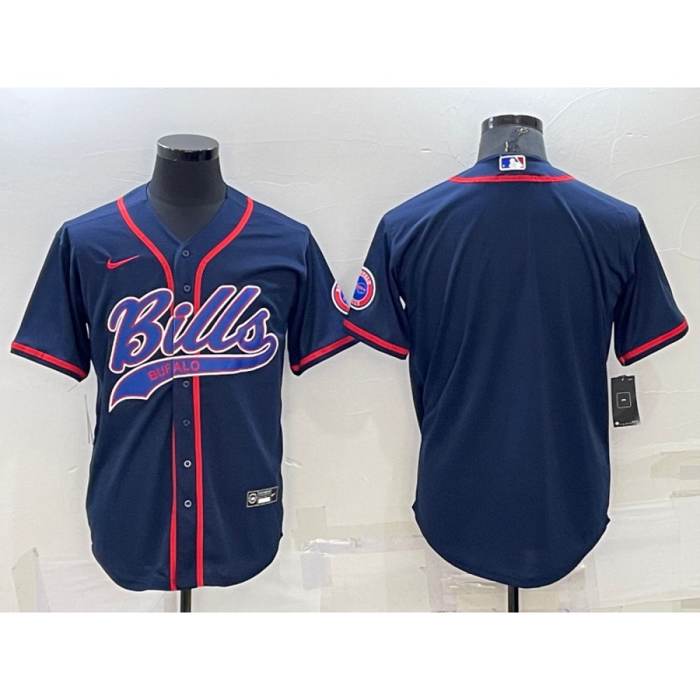 Men's Buffalo Bills Blank Navy With Patch Cool Base Stitched Baseball Jersey