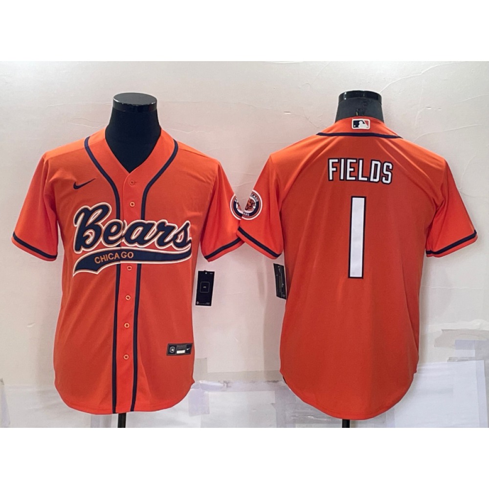 Men's Chicago Bears #1 Justin Fields Orange Cool Base Stitched Baseball Jersey