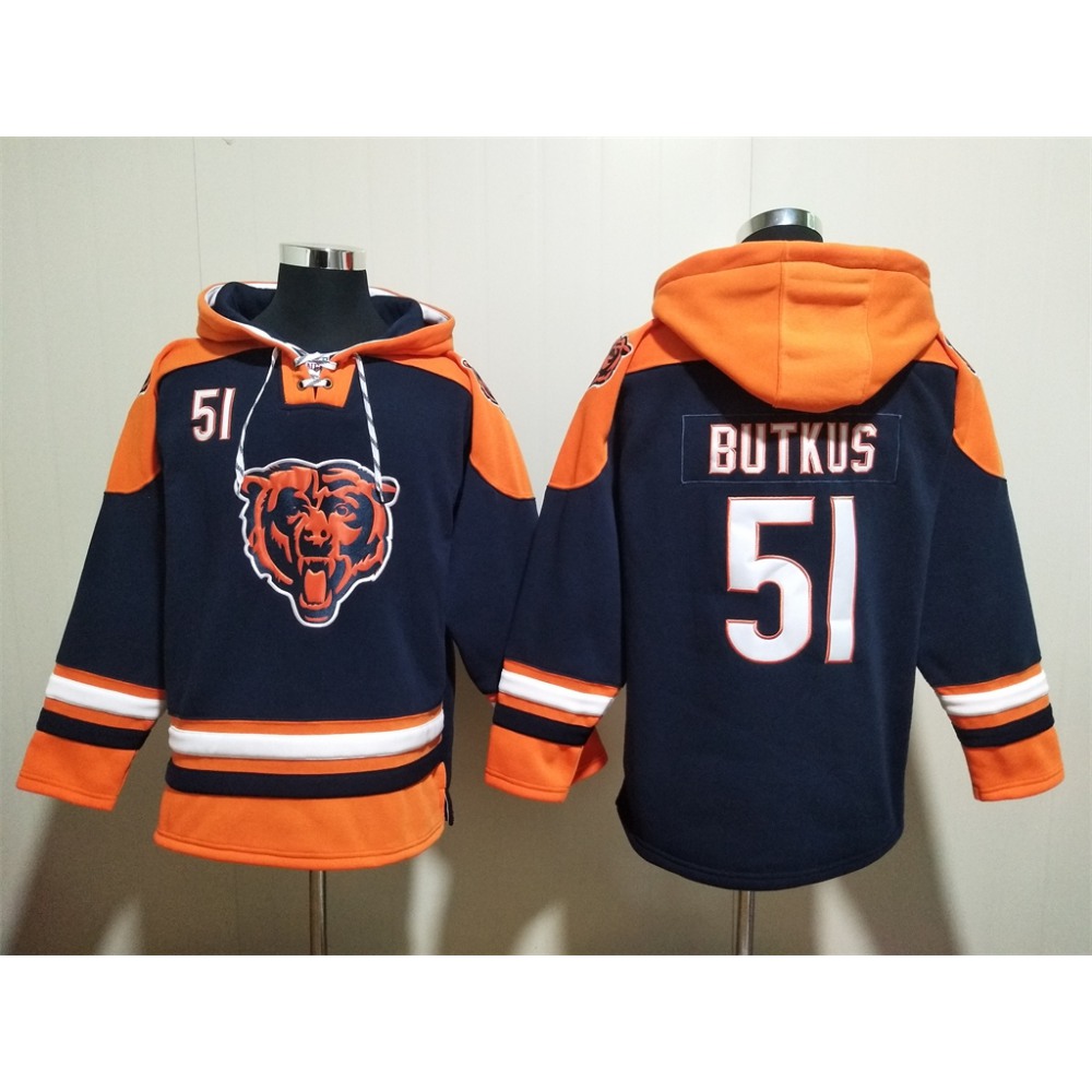 Men's Chicago Bears #51 Dick Butkus Navy Ageless Must-Have Lace-Up Pullover Hoodie