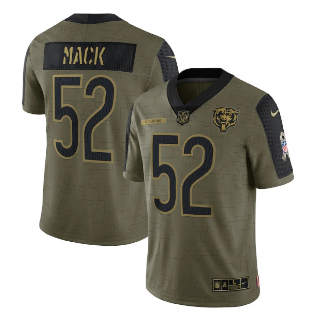 Men's Chicago Bears #52 Khalil Mack 2021 Olive Salute To Service Limited Stitched Jersey