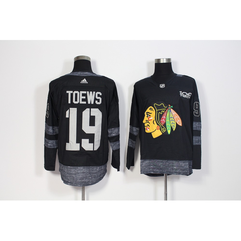 Men's Chicago Blackhawks #19 Jonathan Toews Black 1917-2017 100th Anniversary Stitched NHL Jersey