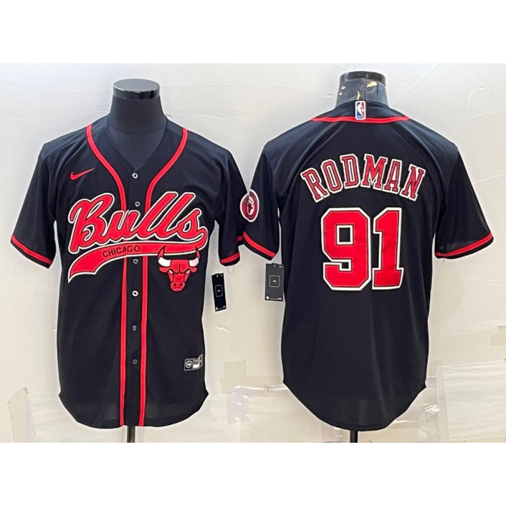 Men's Chicago Bulls #91 Dennis Rodman Black Cool Base Stitched Baseball Jersey
