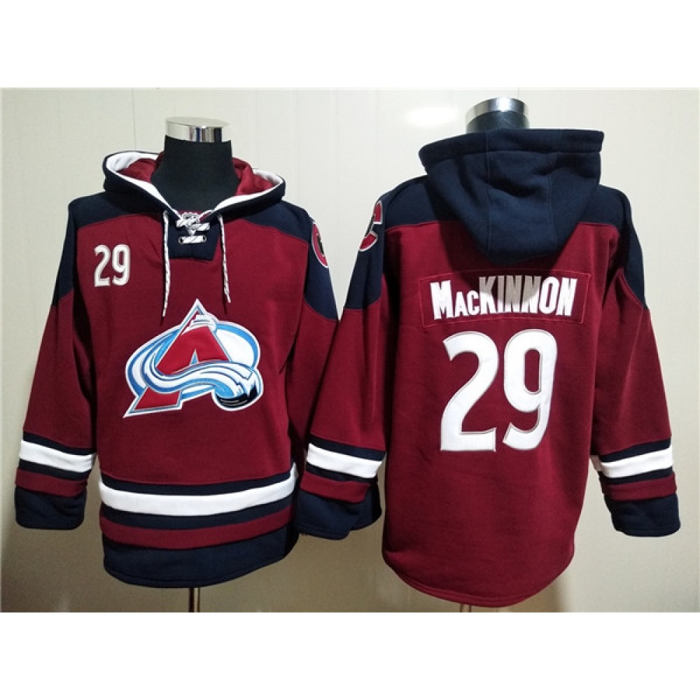 Men's Colorado Avalanche #29 Nathan MacKinnon Burgundy All Stitched Sweatshirt Hoodie