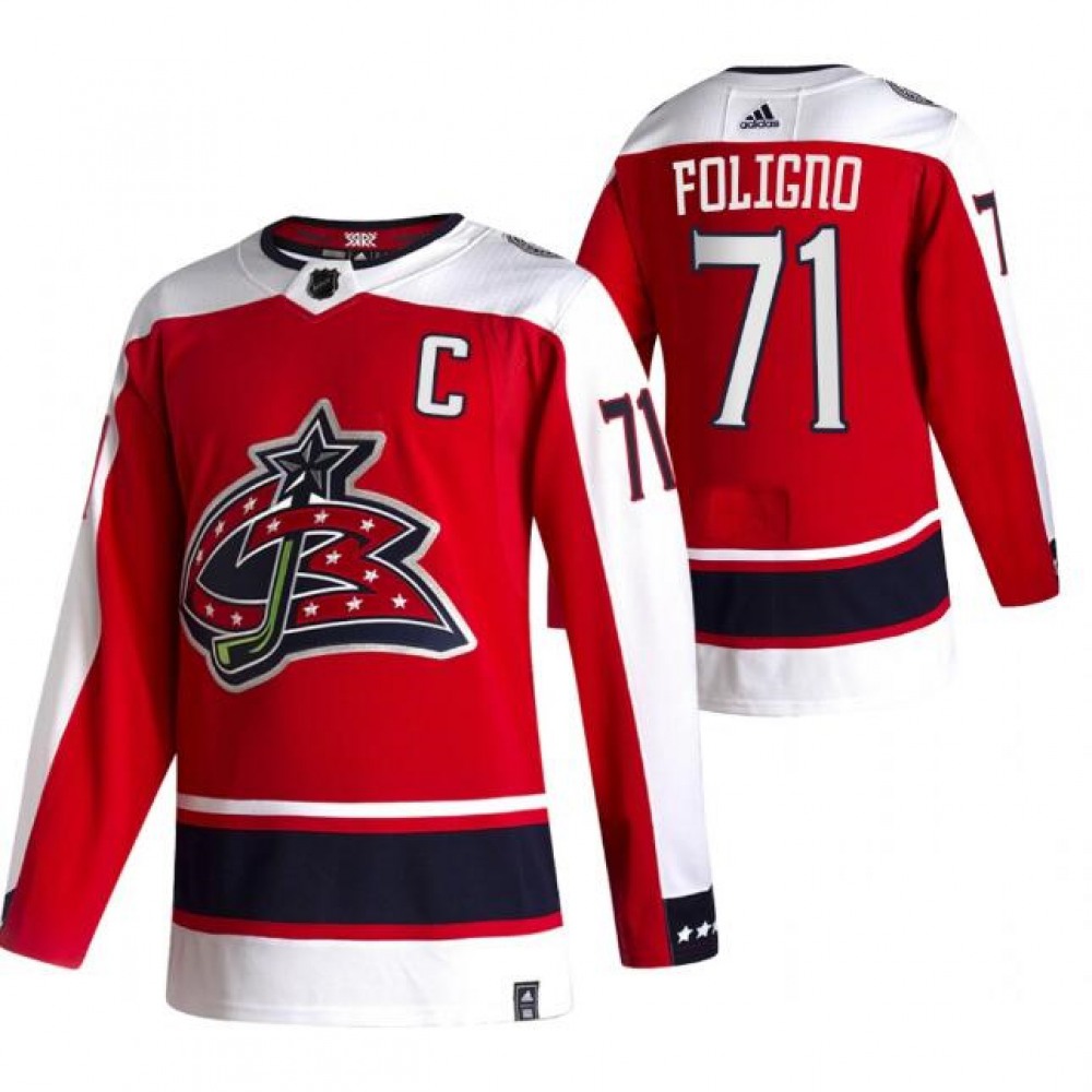 Men's Columbus Blue Jackets #71 Nick Foligno 2020-21 Red Reverse Retro Stitched Jersey