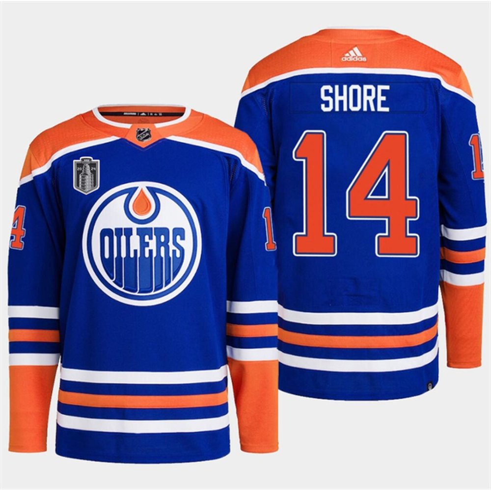 Men's Edmonton Oilers #14 Devin Shore Royal 2024 Stanley Cup Final Patch Stitched Jersey
