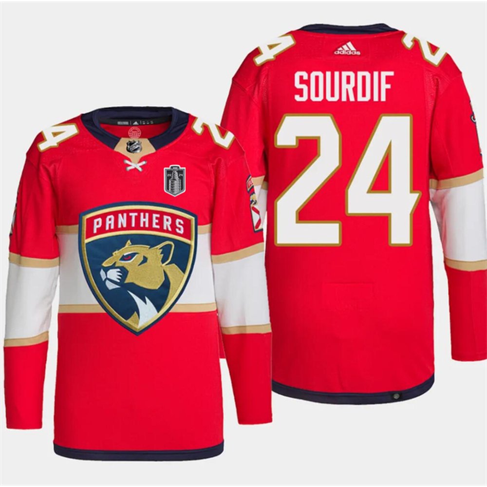 Men's Florida Panthers #24 Justin Sourdif Red 2024 Stanley Cup Final Stitched Jersey