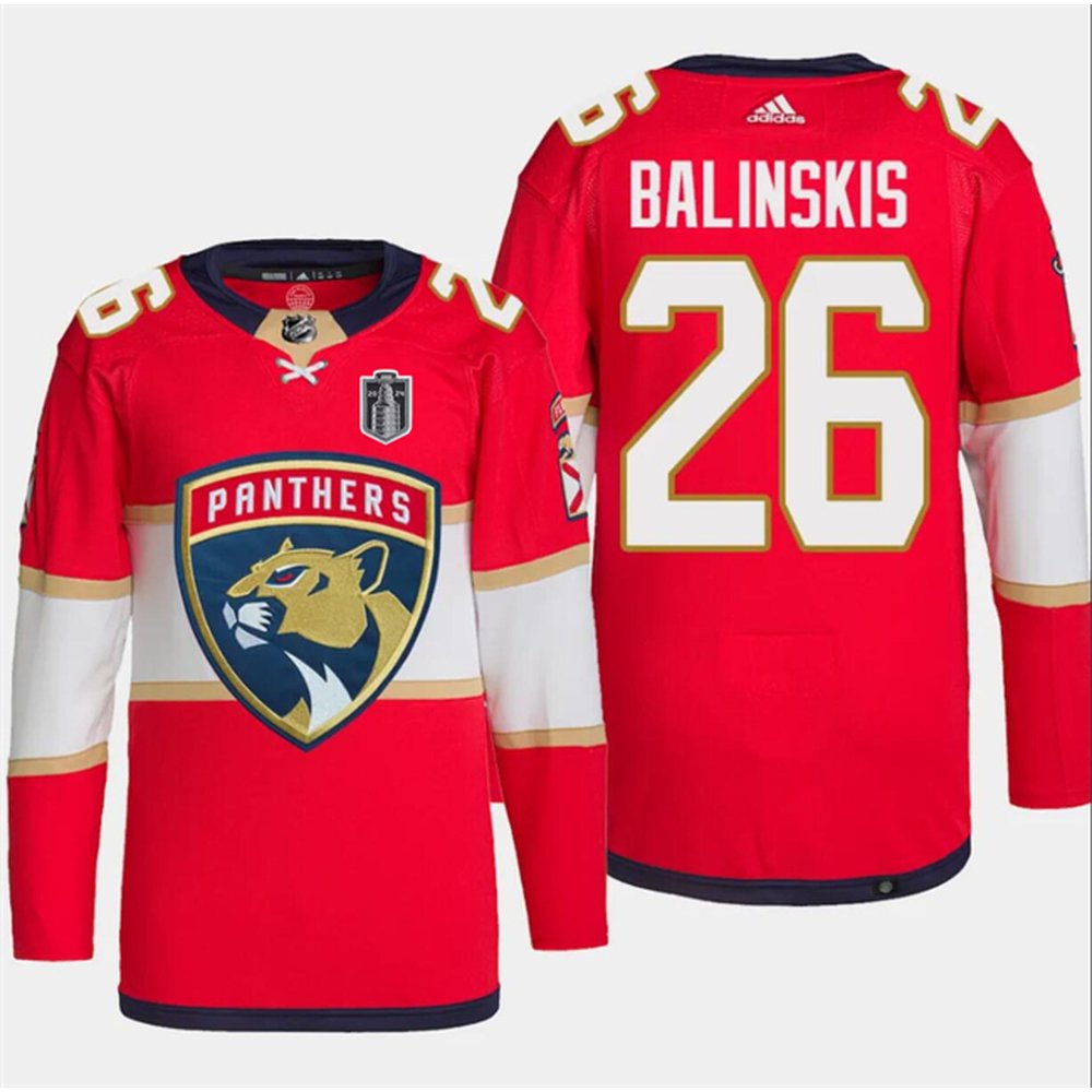 Men's Florida Panthers #26 Uvis Balinskis Red 2024 Stanley Cup Final Patch Stitched Jersey