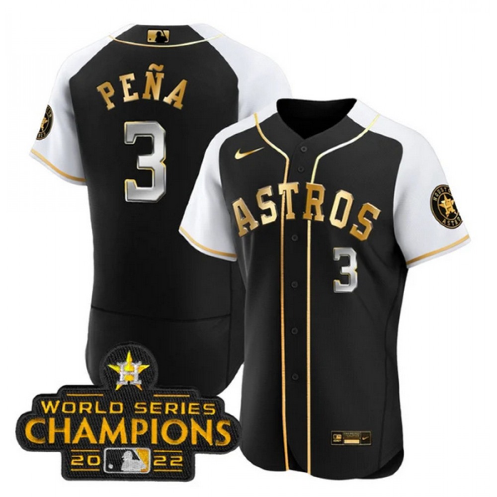 Men's Houston Astros #3 Jeremy Pena 2023 Black Gold Alternate Flex Base Stitched Baseball Jersey