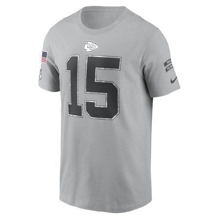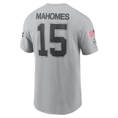 Men's Kansas City Chiefs #15 Patrick Mahomes Gray 2024 Salute To Service Name & Number T-Shirt