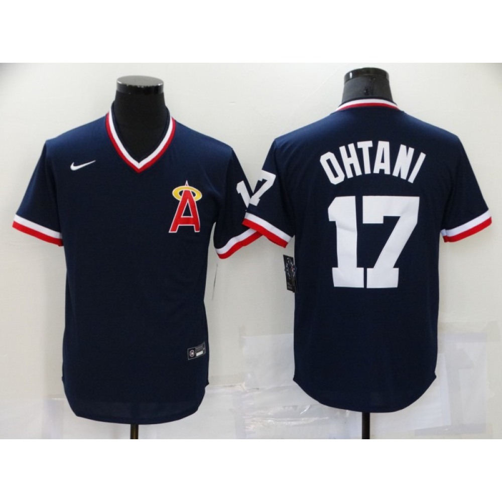 Men's Los Angeles Angels #17 Shohei Ohtani Navy Cool Base Stitched Baseball Jersey