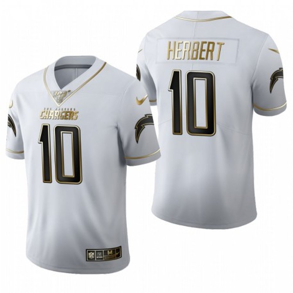 Men's Los Angeles Chargers #10 Justin Herbert Golden/White Limited Stitched Football Jersey