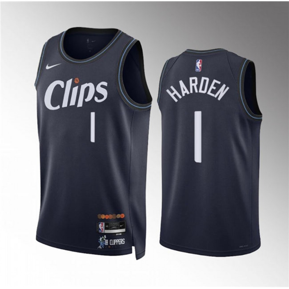 Men's Los Angeles Clippers #1 James Harden Navy 2023/24 City Edition Stitched Jersey