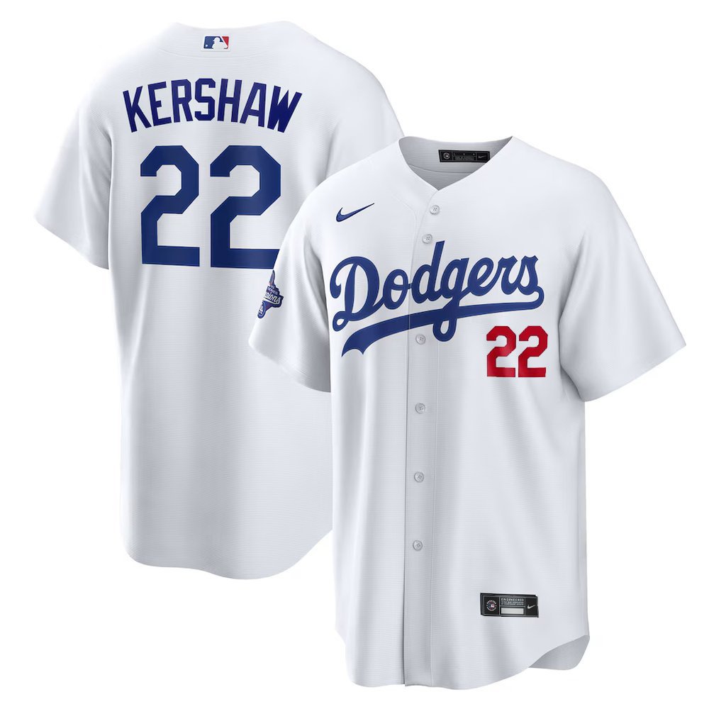 Men's Los Angeles Dodgers #22 Clayton Kershaw Nike White Home 2025 World Series Champions Limited Jersey