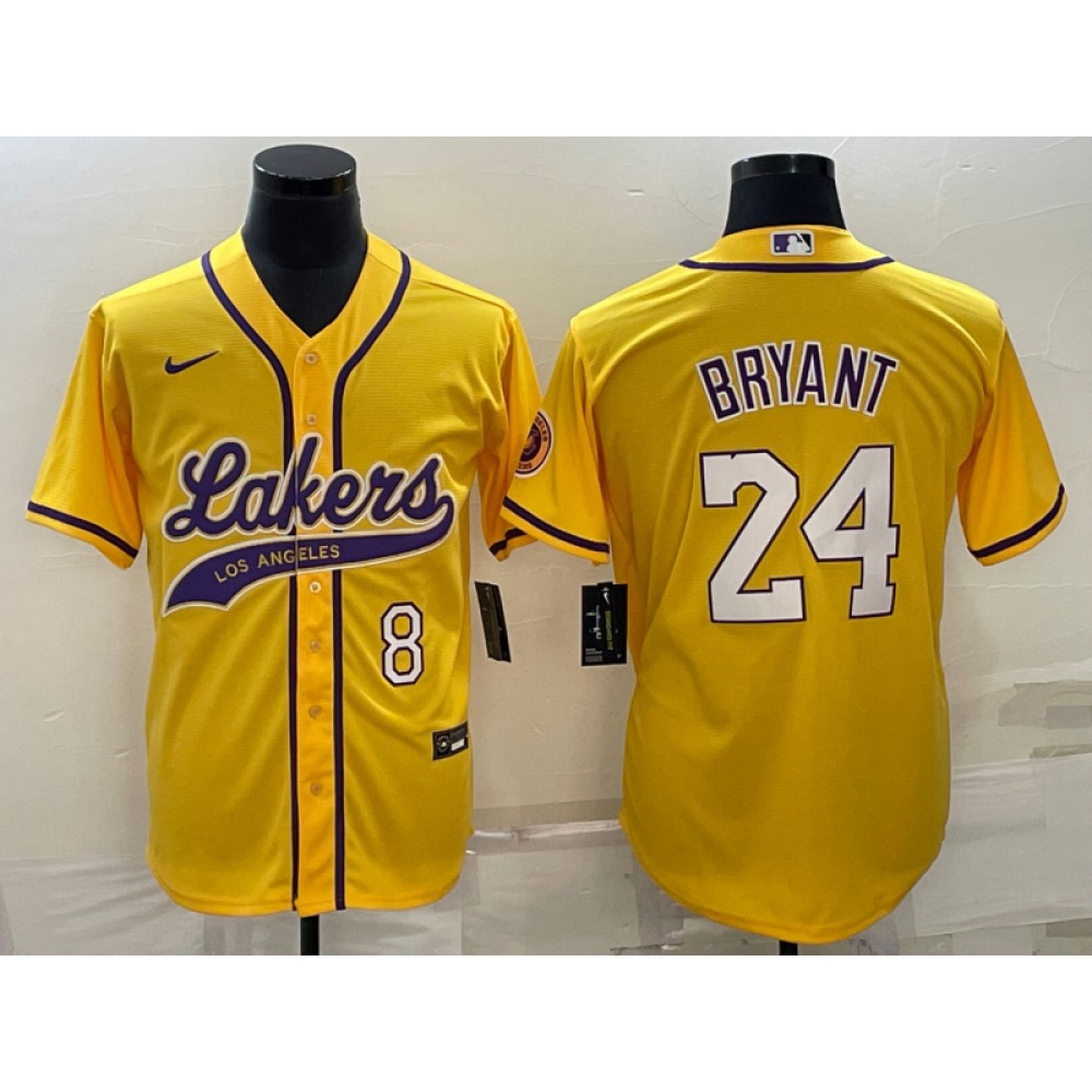 Men's Los Angeles Lakers Front #8 Back #24 Kobe Bryant Yellow Cool Base Stitched Baseball Jersey