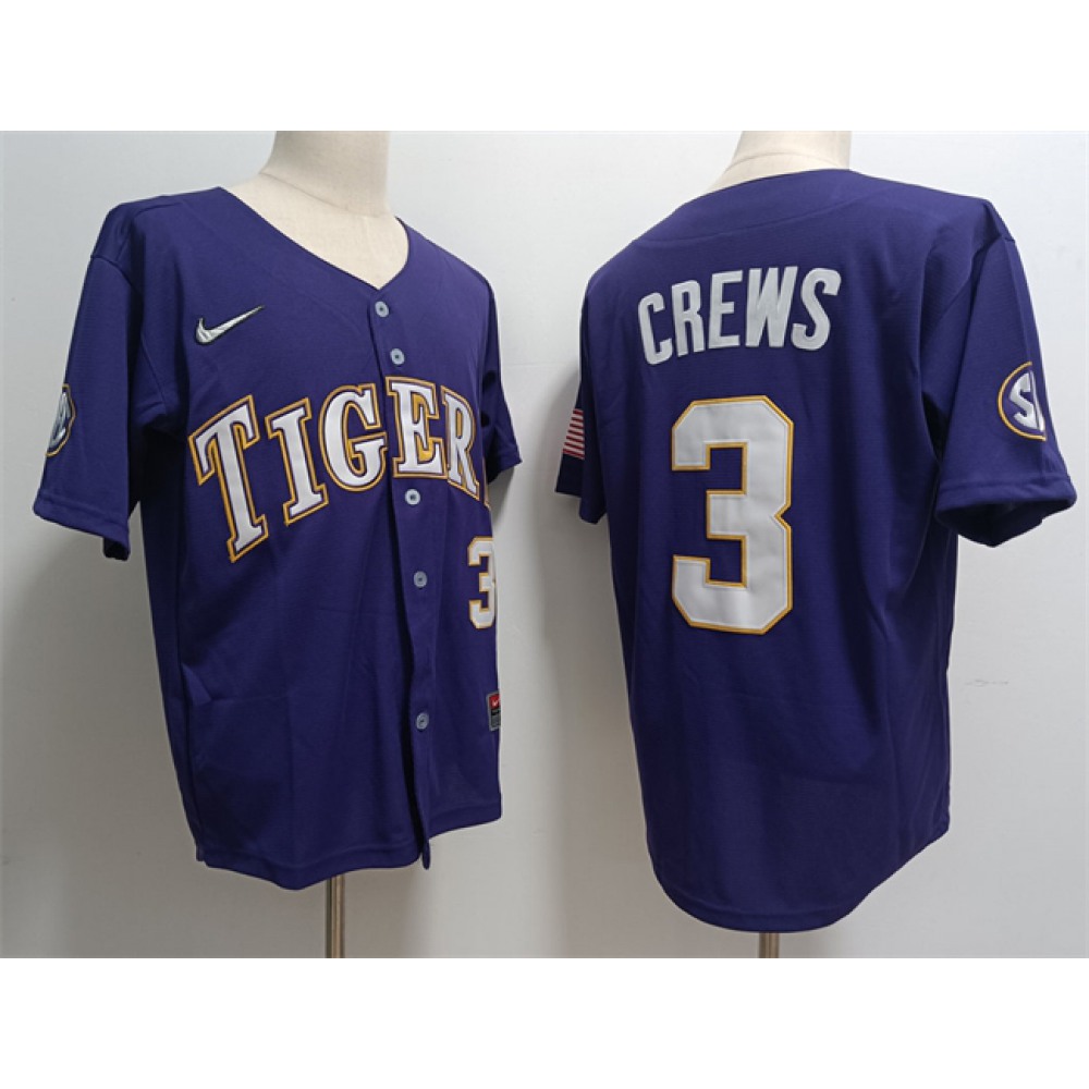 Men's LSU Tigers #3 ylan Crews Purple 2023 Stitched Baseball Jersey