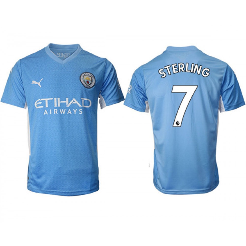 Men's Manchester City #7 Raheem Sterling 2021/22 Blue Home Soccer Jersey