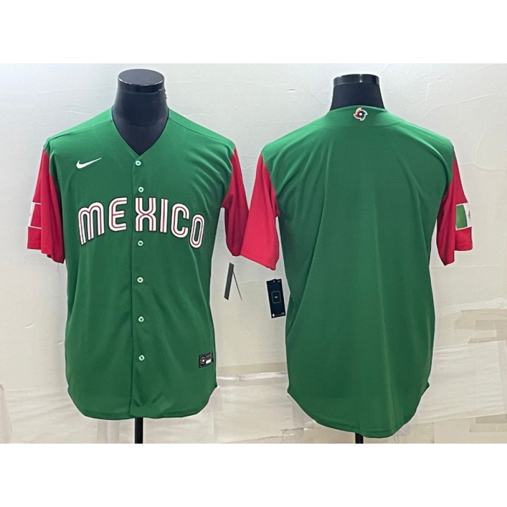 Men's Mexico Baseball Blank 2023 Green World Baseball With Patch Classic Stitched Jersey