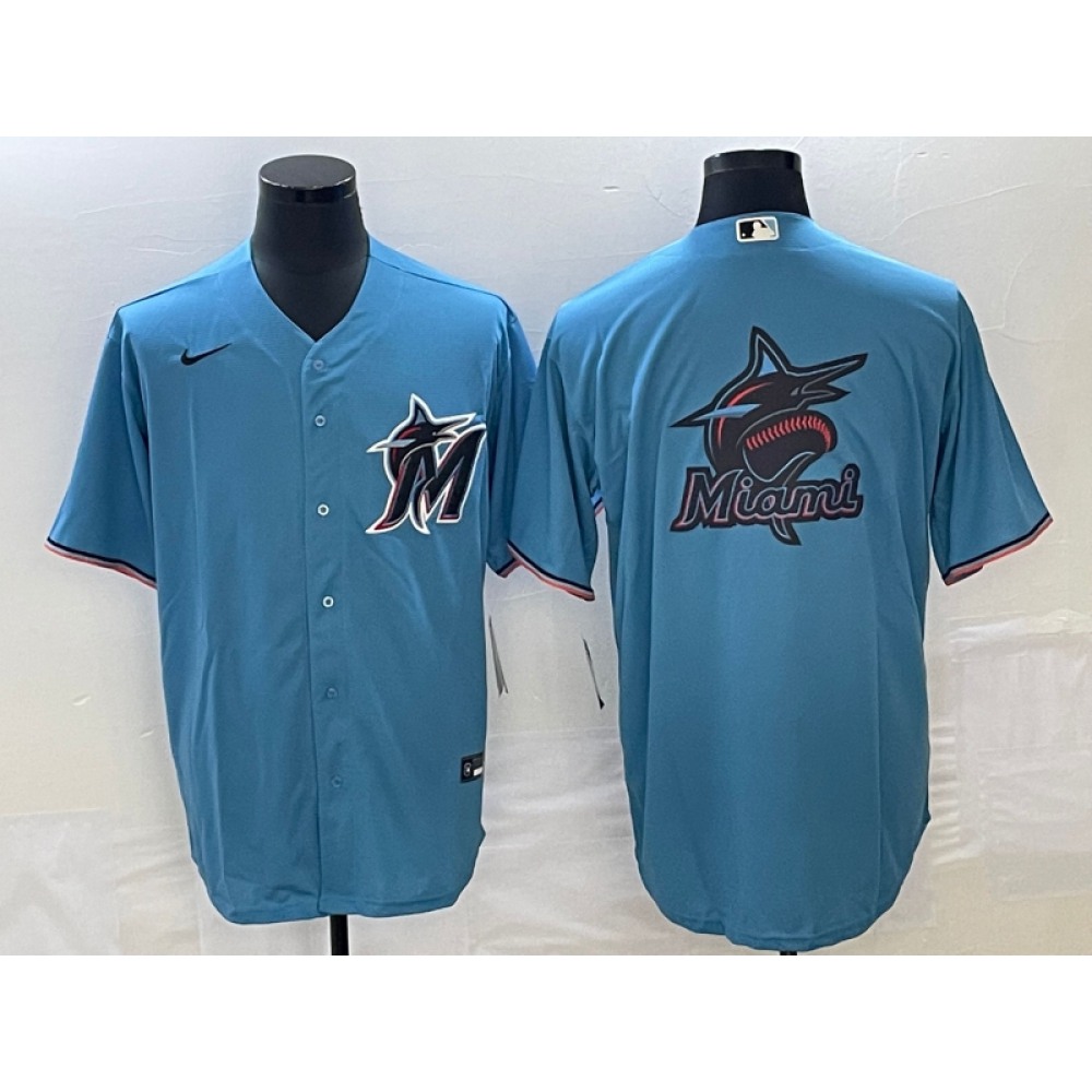 Men's Miami Marlins Blue Team Big Logo Cool Base Stitched Baseball Jersey