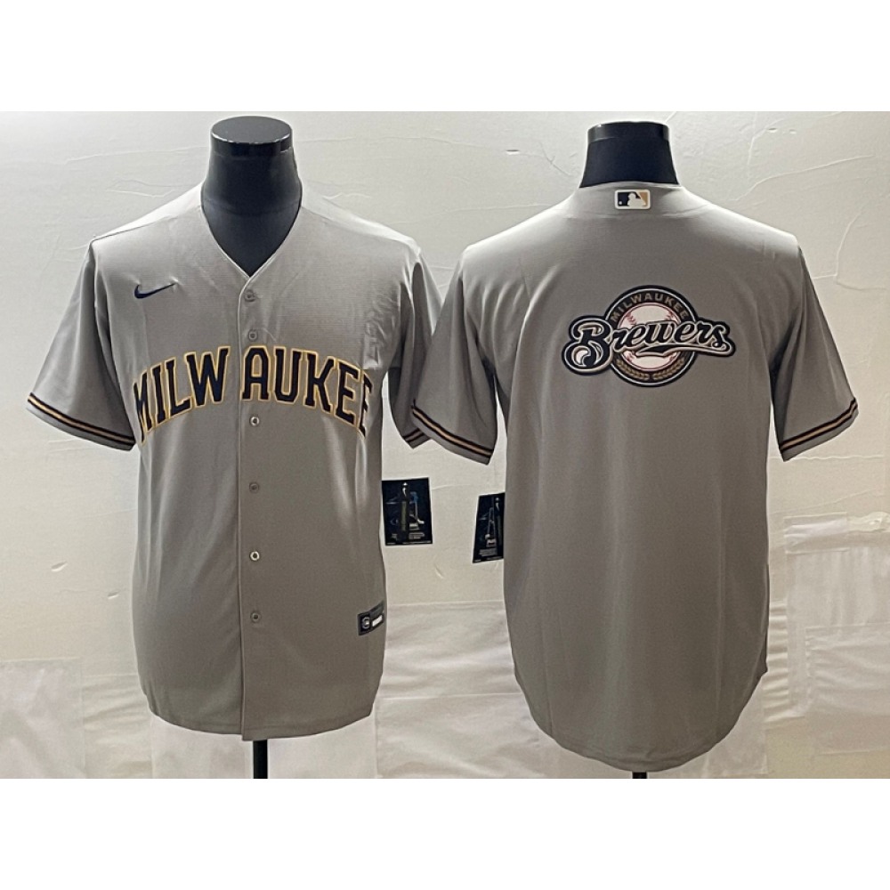 Men's Milwaukee Brewers Gray Team Big Logo Cool Base Stitched Jersey