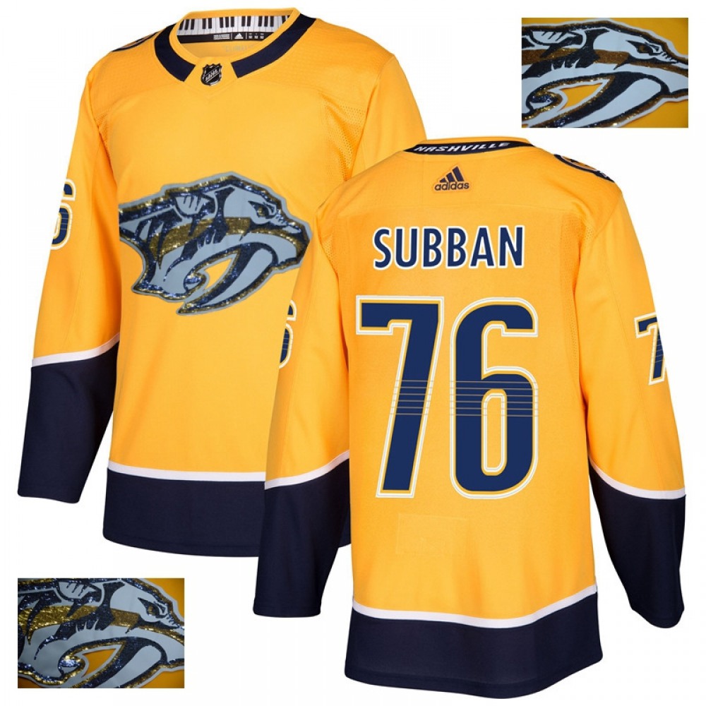 Men's Nashville Predators #76 P.K Subban Yellow Fashion Gold Stitched NHL Jersey