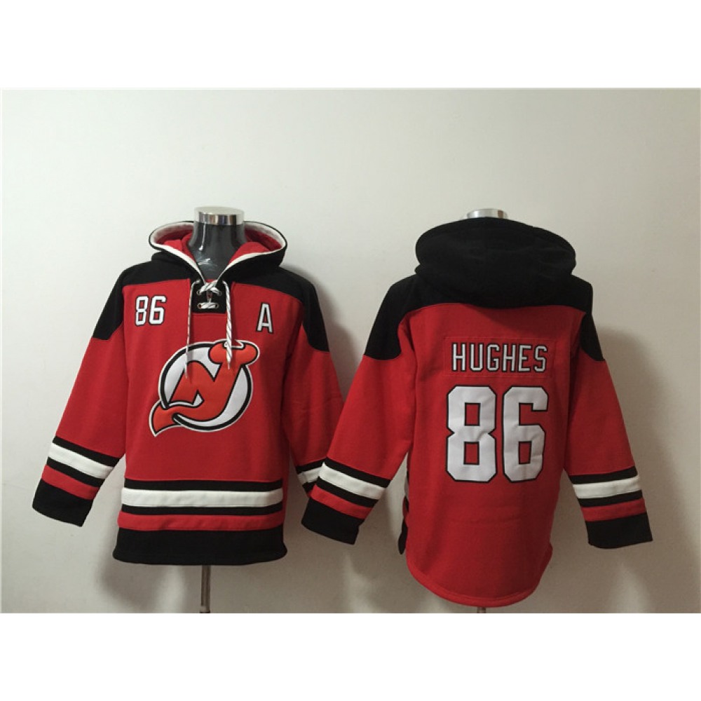 Men's New Jersey Devils #86 Jack Hughes Red Ageless Must-Have Lace-Up Pullover Hoodie