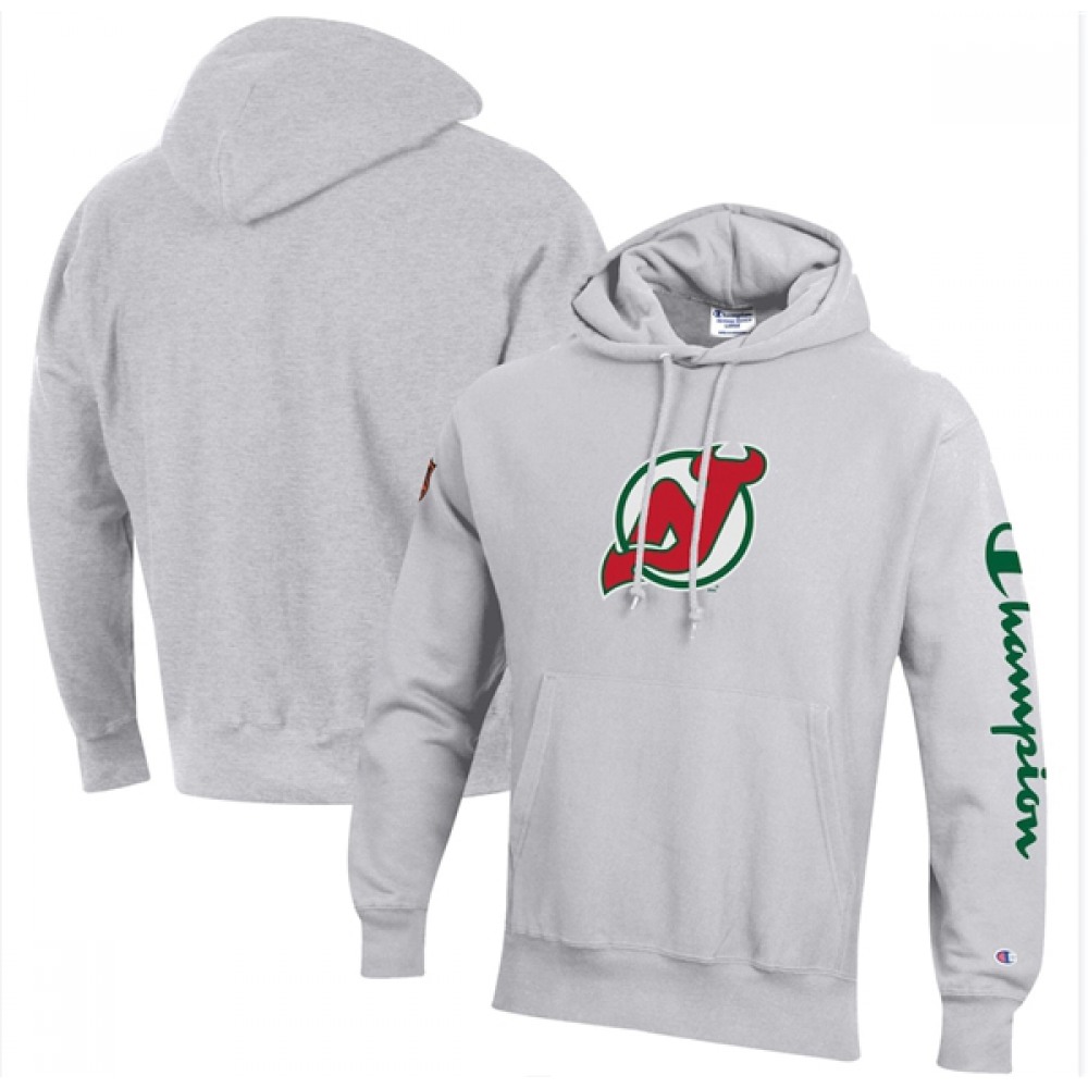 Men's New Jersey Devils Champion Heathered Gray Reverse Weave Pullover Hoodie