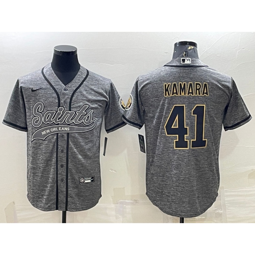 Men's New Orleans Saints #41 Alvin Kamara Grey With Patch Cool Base Stitched Baseball Jersey