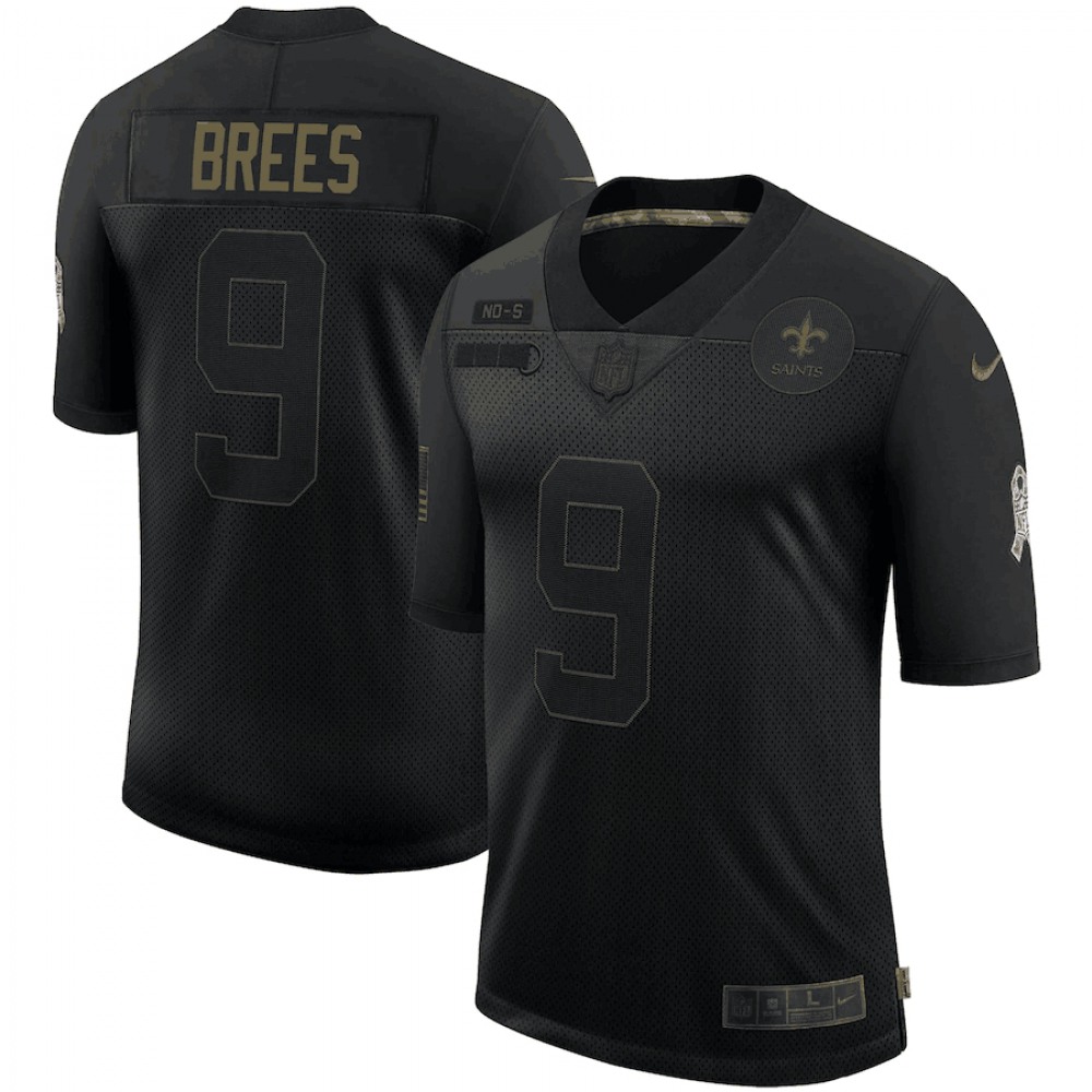 Men's New Orleans Saints #9 Drew Brees 2020 Black Salute To Service Limited Stitched Jersey