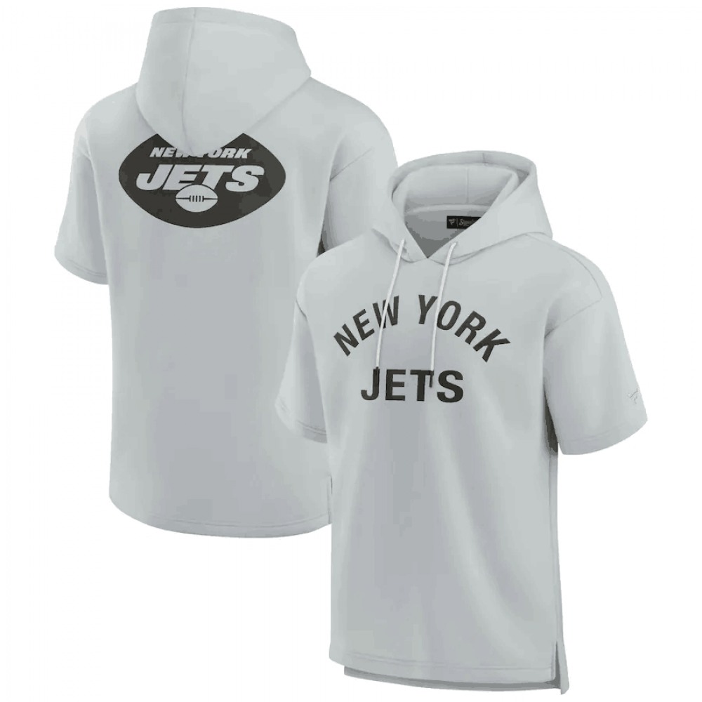 Men's New York Jets Gray Super Soft Fleece Short Sleeve Hoodie
